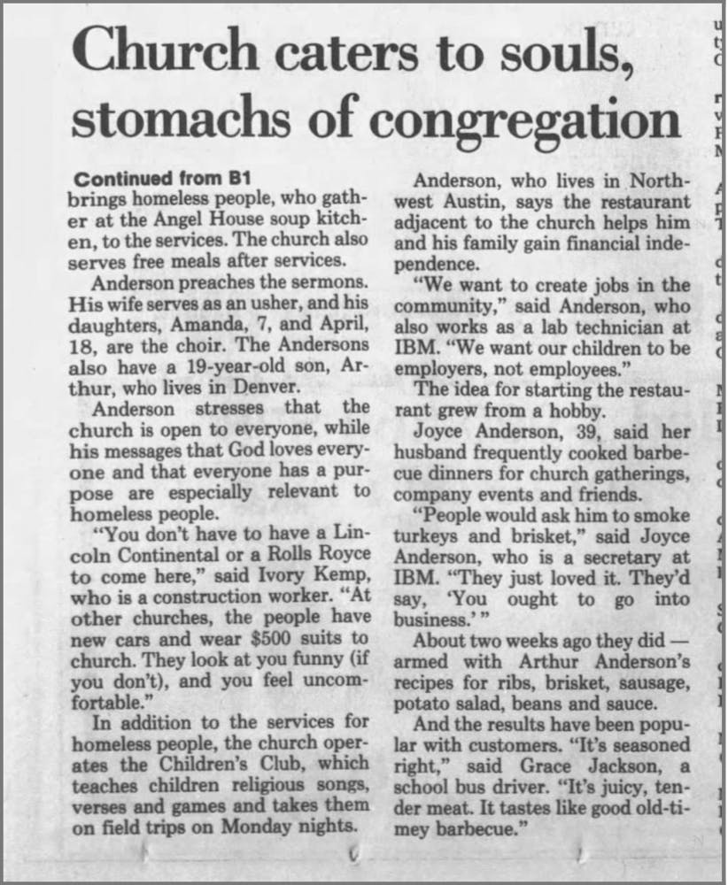Arthur and Joyce Anderson, the owners of our building bought the space in 1991 and have been anchors in our neighborhood ever since. Grace Fellowship Baptist Church which they’ve owned and operated next door for over three decades has been a source of dignity to the underprivileged, a kitchen to the hungry, and a home to those without one.